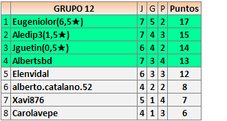 4En está página se irán publicando los resultados de las diferentes partidas, siendo ambos jugadores responsables de subirlos o de comprobar que ya hayan sido publicados insertando un COMENTARIO en la parte inferior de la pantalla (opción “Deja tu comentario”), indicando el nombre de los dos jugadores y los puntos obtenidos en la partida.