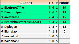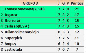 Deja un comentarioEn está página se irán publicando los resultados de las diferentes partidas, siendo ambos jugadores responsables de subirlos o de comprobar que ya hayan sido publicados insertando un COMENTARIO en la parte inferior de la pantalla (opción “Deja tu comentario”), indicando el nombre de los dos jugadores y los puntos obtenidos en la partida.