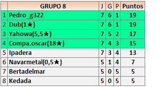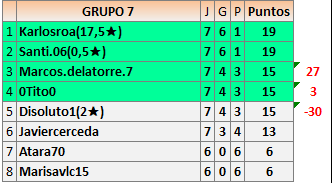Deja un comentarioEn está página se irán publicando los resultados de las diferentes partidas, siendo ambos jugadores responsables de subirlos o de comprobar que ya hayan sido publicados insertando un COMENTARIO en la parte inferior de la pantalla (opción “Deja tu comentario”), indicando el nombre de los dos jugadores y los puntos obtenidos en la partida.