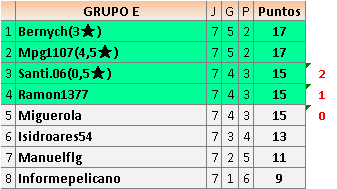 Deja un comentarioEn está página se irán publicando los resultados de las diferentes partidas, siendo ambos jugadores responsables de subirlos o de comprobar que ya hayan sido publicados insertando un COMENTARIO en la parte inferior de la pantalla (opción “Deja tu comentario”), indicando el nombre de los dos jugadores y los puntos obtenidos en la partida.