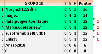 Deja un comentarioEn está página se irán publicando los resultados de las diferentes partidas, siendo ambos jugadores responsables de subirlos o de comprobar que ya hayan sido publicados insertando un COMENTARIO en la parte inferior de la pantalla (opción “Deja tu comentario”), indicando el nombre de los dos jugadores y los puntos obtenidos en la partida.