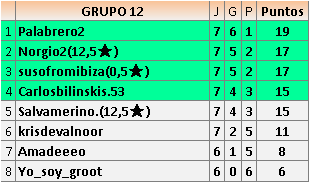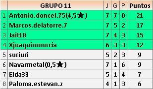 En está página se irán publicando los resultados de las diferentes partidas, siendo ambos jugadores responsables de subirlos o de comprobar que ya hayan sido publicados insertando un COMENTARIO en la parte inferior de la pantalla (opción “Deja tu comentario”), indicando el nombre de los dos jugadores y los puntos obtenidos en la partida.