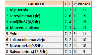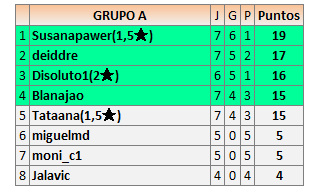 Por diversas circunstancias no he podido jugar con un mínimo de seriedad. Pido disculpas por ello. En el caso de blanajao (no abrir partida en plazo), nada más se debe a que, por error, la abrí a BLANAJO, existiendo tal nick en la aplicación. Lo dicho, mil perdones