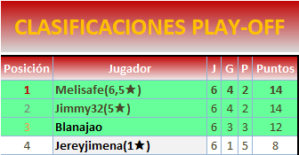 Inicio PLAY OFF VUELTA: 30 de noviembre a las 00:01
