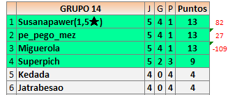 En está página se irán publicando los resultados de las diferentes partidas, siendo ambos jugadores responsables de subirlos o de comprobar que ya hayan sido publicados insertando un COMENTARIO en la parte inferior de la pantalla (opción “Deja tu comentario”), indicando el nombre de los dos jugadores y los puntos obtenidos en la partida.