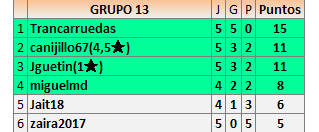 En está página se irán publicando los resultados de las diferentes partidas, siendo ambos jugadores responsables de subirlos o de comprobar que ya hayan sido publicados insertando un COMENTARIO en la parte inferior de la pantalla (opción “Deja tu comentario”), indicando el nombre de los dos jugadores y los puntos obtenidos en la partida.
