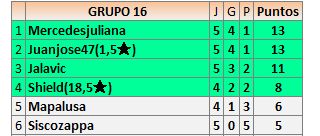 1En está página se irán publicando los resultados de las diferentes partidas, siendo ambos jugadores responsables de subirlos o de comprobar que ya hayan sido publicados insertando un COMENTARIO en la parte inferior de la pantalla (opción “Deja tu comentario”), indicando el nombre de los dos jugadores y los puntos obtenidos en la partida.