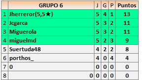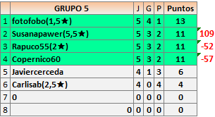 Deja un comentarioEn está página se irán publicando los resultados de las diferentes partidas, siendo ambos jugadores responsables de subirlos o de comprobar que ya hayan sido publicados insertando un COMENTARIO en la parte inferior de la pantalla (opción “Deja tu comentario”), indicando el nombre de los dos jugadores y los puntos obtenidos en la partida.