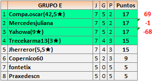 Deja un comentarioEn está página se irán publicando los resultados de las diferentes partidas, siendo ambos jugadores responsables de subirlos o de comprobar que ya hayan sido publicados insertando un COMENTARIO en la parte inferior de la pantalla (opción “Deja tu comentario”), indicando el nombre de los dos jugadores y los puntos obtenidos en la partida.