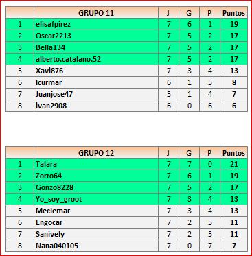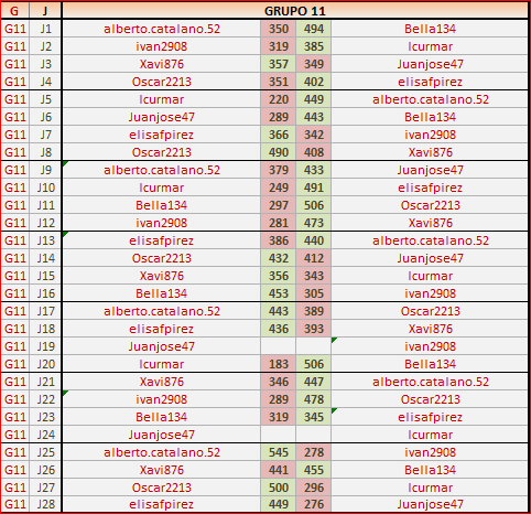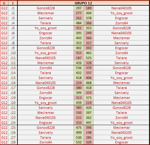 Deja un comentarioEn está página se irán publicando los resultados de las diferentes partidas, siendo ambos jugadores responsables de subirlos o de comprobar que ya hayan sido publicados, insertando un COMENTARIO en la parte inferior de la pantalla (opción “Deja tu comentario”), indicando el nombre de los dos jugadores y los puntos obtenidos en la partida.