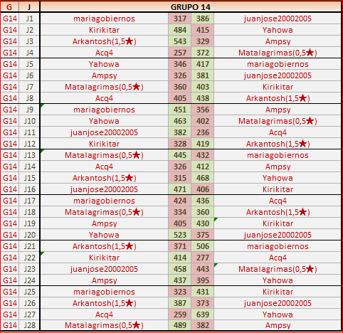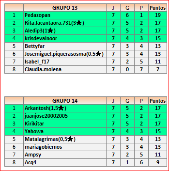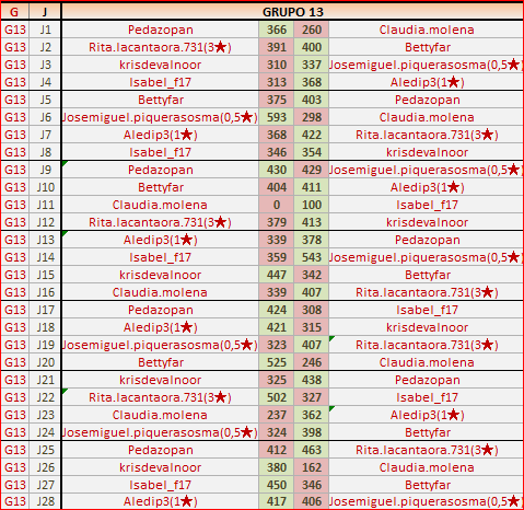 Deja un comentarioEn está página se irán publicando los resultados de las diferentes partidas, siendo ambos jugadores responsables de subirlos o de comprobar que ya hayan sido publicados, insertando un COMENTARIO en la parte inferior de la pantalla (opción “Deja tu comentario”), indicando el nombre de los dos jugadores y los puntos obtenidos en la partida.
