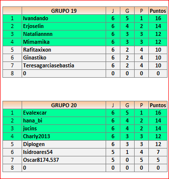 Deja un comentarioEn está página se irán publicando los resultados de las diferentes partidas, siendo ambos jugadores responsables de subirlos o de comprobar que ya hayan sido publicados, insertando un COMENTARIO en la parte inferior de la pantalla (opción “Deja tu comentario”), indicando el nombre de los dos jugadores y los puntos obtenidos en la partida.
