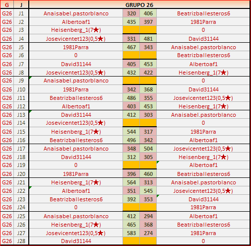 Deja un comentarioEn está página se irán publicando los resultados de las diferentes partidas, siendo ambos jugadores responsables de subirlos o de comprobar que ya hayan sido publicados, insertando un COMENTARIO en la parte inferior de la pantalla (opción “Deja tu comentario”), indicando el nombre de los dos jugadores y los puntos obtenidos en la partida.