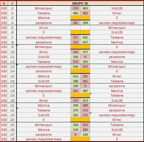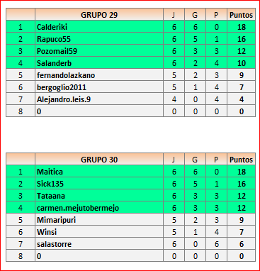 Deja un comentarioEn está página se irán publicando los resultados de las diferentes partidas, siendo ambos jugadores responsables de subirlos o de comprobar que ya hayan sido publicados, insertando un COMENTARIO en la parte inferior de la pantalla (opción “Deja tu comentario”), indicando el nombre de los dos jugadores y los puntos obtenidos en la partida.