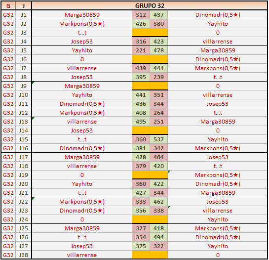 Deja un comentarioEn está página se irán publicando los resultados de las diferentes partidas, siendo ambos jugadores responsables de subirlos o de comprobar que ya hayan sido publicados, insertando un COMENTARIO en la parte inferior de la pantalla (opción “Deja tu comentario”), indicando el nombre de los dos jugadores y los puntos obtenidos en la partida.