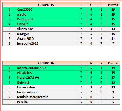 Deja un comentarioEn está página se irán publicando los resultados de las diferentes partidas, siendo ambos jugadores responsables de subirlos o de comprobar que ya hayan sido publicados, insertando un COMENTARIO en la parte inferior de la pantalla (opción “Deja tu comentario”), indicando el nombre de los dos jugadores y los puntos obtenidos en la partida.