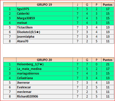 Deja un comentarioEn está página se irán publicando los resultados de las diferentes partidas, siendo ambos jugadores responsables de subirlos o de comprobar que ya hayan sido publicados, insertando un COMENTARIO en la parte inferior de la pantalla (opción “Deja tu comentario”), indicando el nombre de los dos jugadores y los puntos obtenidos en la partida.