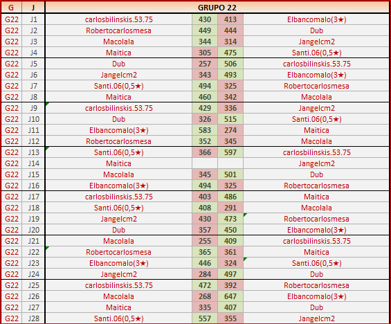 Deja un comentarioEn está página se irán publicando los resultados de las diferentes partidas, siendo ambos jugadores responsables de subirlos o de comprobar que ya hayan sido publicados, insertando un COMENTARIO en la parte inferior de la pantalla (opción “Deja tu comentario”), indicando el nombre de los dos jugadores y los puntos obtenidos en la partida.