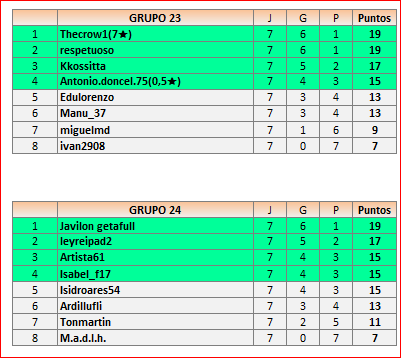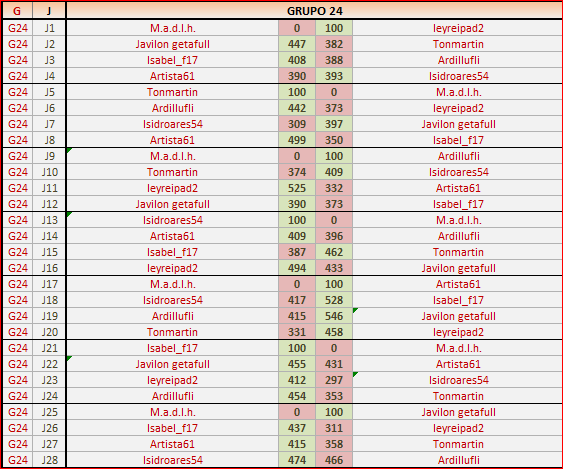 Deja un comentarioEn está página se irán publicando los resultados de las diferentes partidas, siendo ambos jugadores responsables de subirlos o de comprobar que ya hayan sido publicados, insertando un COMENTARIO en la parte inferior de la pantalla (opción “Deja tu comentario”), indicando el nombre de los dos jugadores y los puntos obtenidos en la partida.