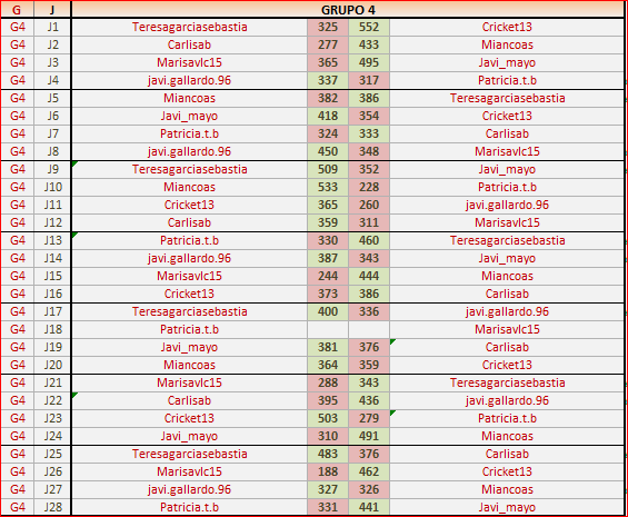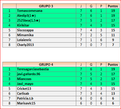 Deja un comentarioEn está página se irán publicando los resultados de las diferentes partidas, siendo ambos jugadores responsables de subirlos o de comprobar que ya hayan sido publicados, insertando un COMENTARIO en la parte inferior de la pantalla (opción “Deja tu comentario”), indicando el nombre de los dos jugadores y los puntos obtenidos en la partida.