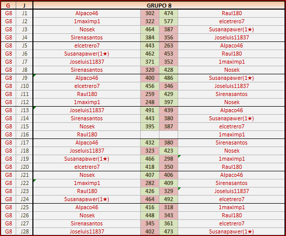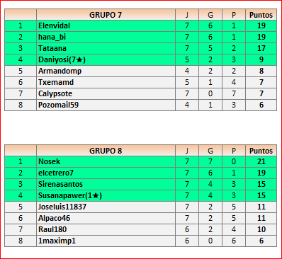 Deja un comentarioEn está página se irán publicando los resultados de las diferentes partidas, siendo ambos jugadores responsables de subirlos o de comprobar que ya hayan sido publicados, insertando un COMENTARIO en la parte inferior de la pantalla (opción “Deja tu comentario”), indicando el nombre de los dos jugadores y los puntos obtenidos en la partida.