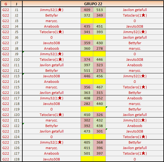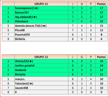 Deja un comentarioEn está página se irán publicando los resultados de las diferentes partidas, siendo ambos jugadores responsables de subirlos o de comprobar que ya hayan sido publicados, insertando un COMENTARIO en la parte inferior de la pantalla (opción “Deja tu comentario”), indicando el nombre de los dos jugadores y los puntos obtenidos en la partida.