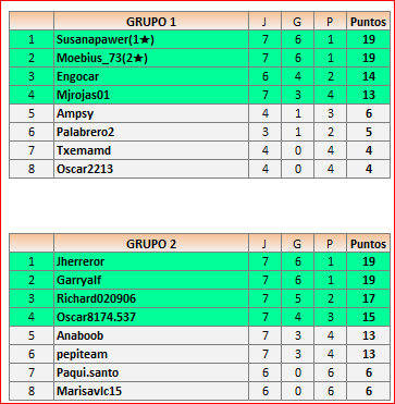 Deja un comentarioEn está página se irán publicando los resultados de las diferentes partidas, siendo ambos jugadores responsables de subirlos o de comprobar que ya hayan sido publicados, insertando un COMENTARIO en la parte inferior de la pantalla (opción “Deja tu comentario”), indicando el nombre de los dos jugadores y los puntos obtenidos en la partida.