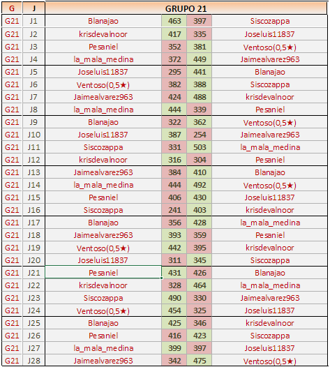 J1: Jugador local (406) – Jugador visitante (447)