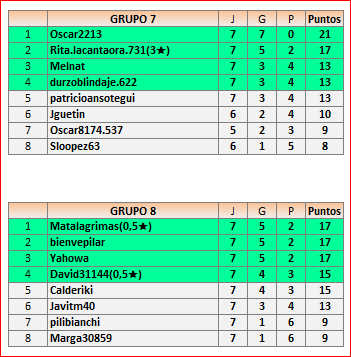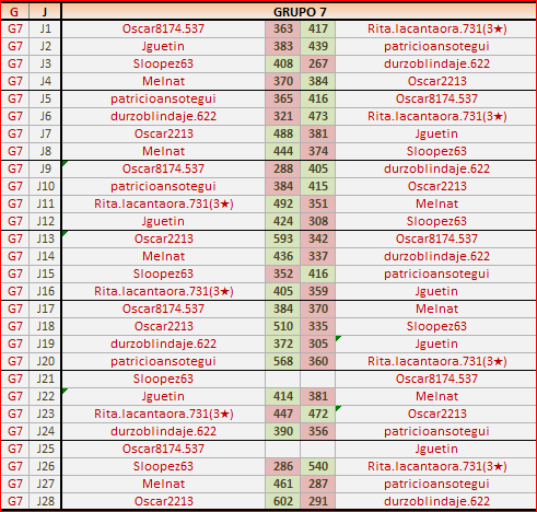 En está página se irán publicando los resultados de las diferentes partidas, siendo ambos jugadores responsables de subirlos o de comprobar que ya hayan sido publicados, insertando un COMENTARIO en la parte inferior de la pantalla (opción “Deja tu comentario”), indicando el nombre de los dos jugadores y los puntos obtenidos en la partida.