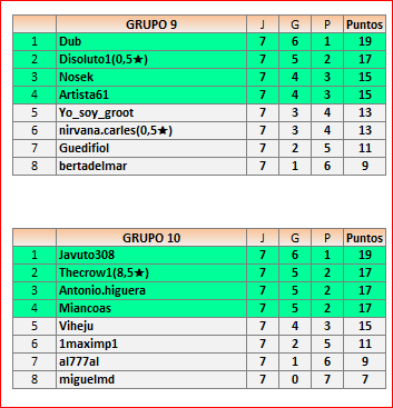 Deja un comentarioEn está página se irán publicando los resultados de las diferentes partidas, siendo ambos jugadores responsables de subirlos o de comprobar que ya hayan sido publicados, insertando un COMENTARIO en la parte inferior de la pantalla (opción “Deja tu comentario”), indicando el nombre de los dos jugadores y los puntos obtenidos en la partida.