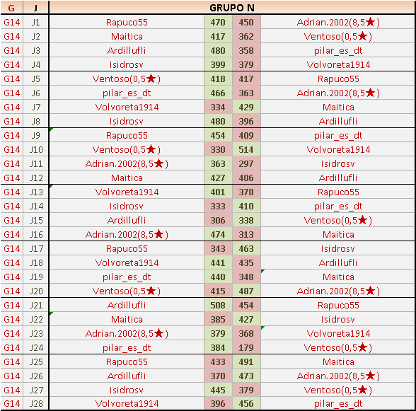 Deja un comentarioES OBLIGATORIO RESPETAR EL ORDEN LOCAL (IZQ) Y VISITANTE (DER), ASÍ COMO INDICAR EL GRUPO CORRESPONDIENTE Y LOS NÚMEROS DE JORNADA.