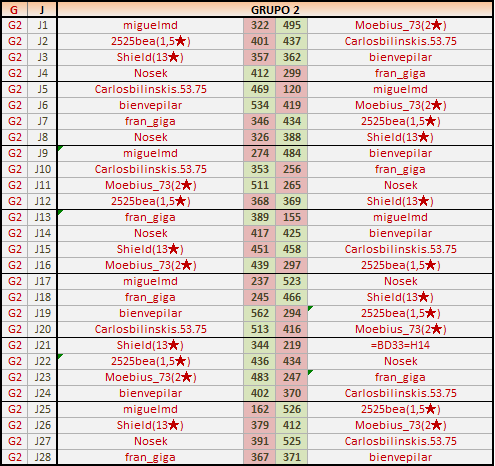 Deja un comentarioEn está página se irán publicando los resultados de las diferentes partidas, siendo ambos jugadores responsables de subirlos o de comprobar que ya hayan sido publicados, insertando un COMENTARIO en la parte inferior de la pantalla (opción “Deja tu comentario”), indicando el nombre de los dos jugadores y los puntos obtenidos en la partida.