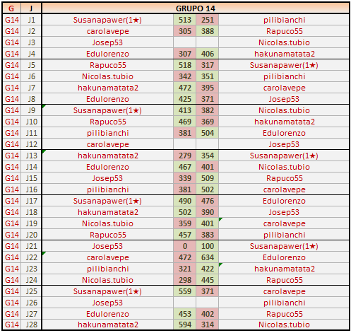 Deja un comentarioEn esta página se irán publicando los resultados de las diferentes partidas, siendo ambos jugadores responsables de subirlos o de comprobar que ya hayan sido publicados, insertando un COMENTARIO en la parte inferior de la pantalla (opción “Deja tu comentario”), indicando el nombre de los dos jugadores y los puntos obtenidos en la partida.