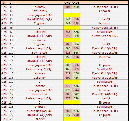 En esta página se irán publicando los resultados de las diferentes partidas, siendo ambos jugadores responsables de subirlos o de comprobar que ya hayan sido publicados, insertando un COMENTARIO en la parte inferior de la pantalla (opción “Deja tu comentario”), indicando el nombre de los dos jugadores y los puntos obtenidos en la partida.
