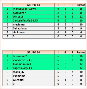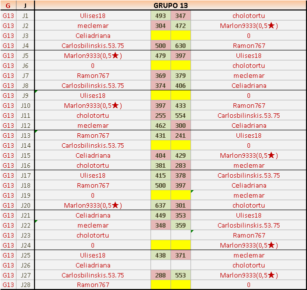 Deja un comentarioEn está página se irán publicando los resultados de las diferentes partidas, siendo ambos jugadores responsables de subirlos o de comprobar que ya hayan sido publicados, insertando un COMENTARIO en la parte inferior de la pantalla (opción “Deja tu comentario”), indicando el nombre de los dos jugadores y los puntos obtenidos en la partida.