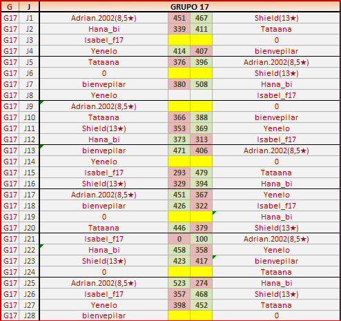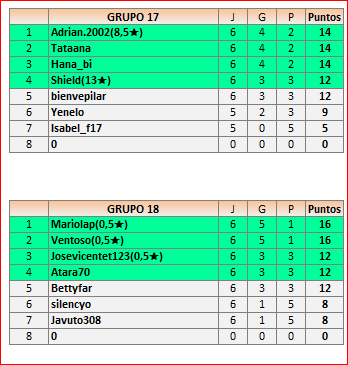 Deja un comentarioEn está página se irán publicando los resultados de las diferentes partidas, siendo ambos jugadores responsables de subirlos o de comprobar que ya hayan sido publicados, insertando un COMENTARIO en la parte inferior de la pantalla (opción “Deja tu comentario”), indicando el nombre de los dos jugadores y los puntos obtenidos en la partida.