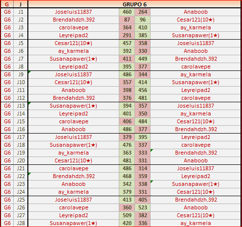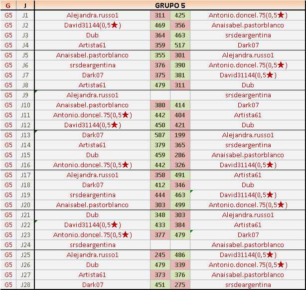 Deja un comentarioEn está página se irán publicando los resultados de las diferentes partidas, siendo ambos jugadores responsables de subirlos o de comprobar que ya hayan sido publicados, insertando un COMENTARIO en la parte inferior de la pantalla (opción “Deja tu comentario”), indicando el nombre de los dos jugadores y los puntos obtenidos en la partida.