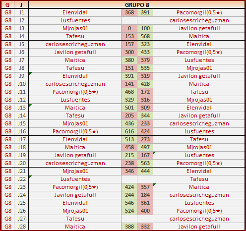 9En está página se irán publicando los resultados de las diferentes partidas, siendo ambos jugadores responsables de subirlos o de comprobar que ya hayan sido publicados, insertando un COMENTARIO en la parte inferior de la pantalla (opción “Deja tu comentario”), indicando el nombre de los dos jugadores y los puntos obtenidos en la partida.