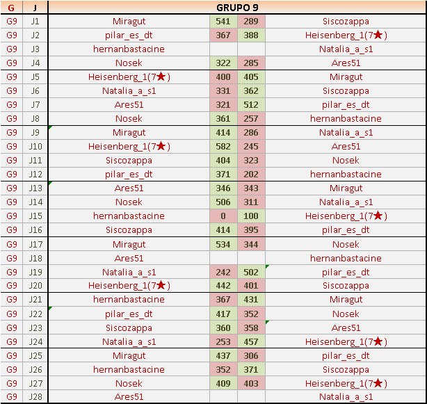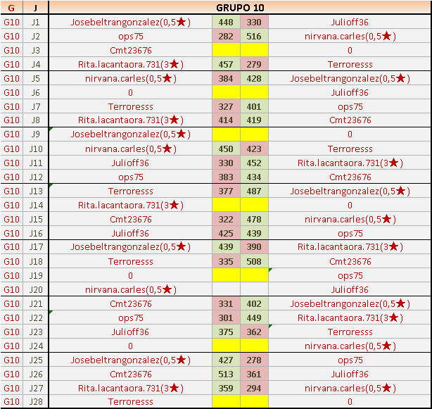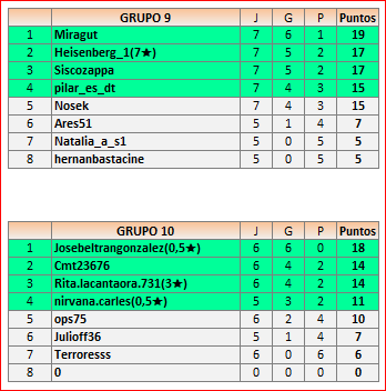Deja un comentarioEn está página se irán publicando los resultados de las diferentes partidas, siendo ambos jugadores responsables de subirlos o de comprobar que ya hayan sido publicados, insertando un COMENTARIO en la parte inferior de la pantalla (opción “Deja tu comentario”), indicando el nombre de los dos jugadores y los puntos obtenidos en la partida.