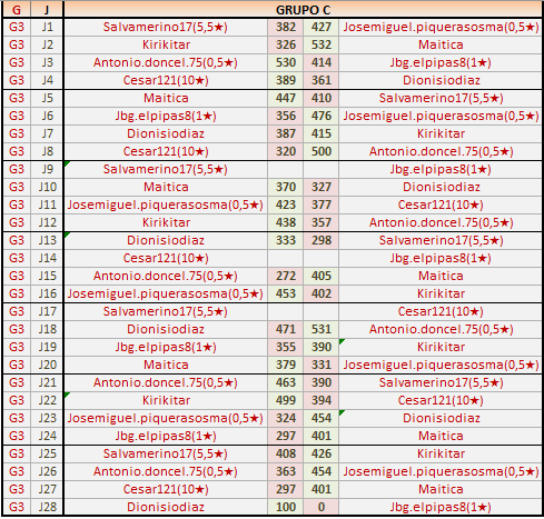 Deja un comentarioES OBLIGATORIO RESPETAR EL ORDEN LOCAL (IZQ) Y VISITANTE (DER), ASÍ COMO INDICAR EL GRUPO CORRESPONDIENTE Y LOS NÚMEROS DE JORNADA.