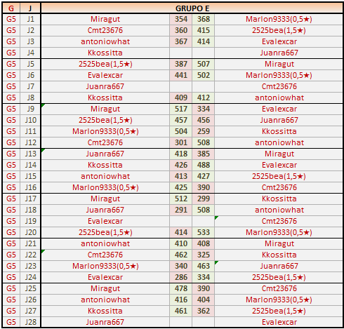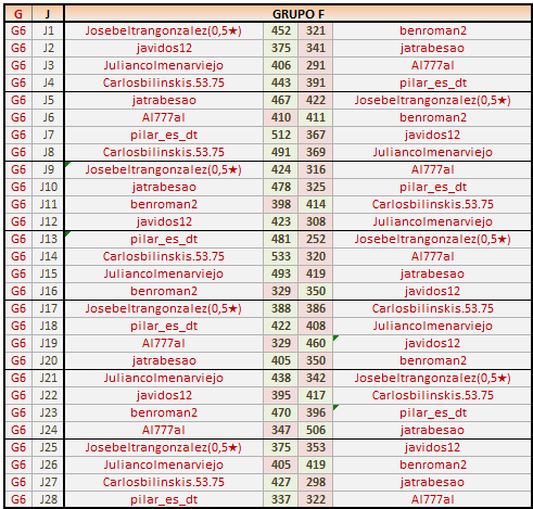 Creo que han cometido un error en la clasificacion del grupo F, entre los 4 jugadores que estamos empatados con 4 victorias y 3 derrotas.