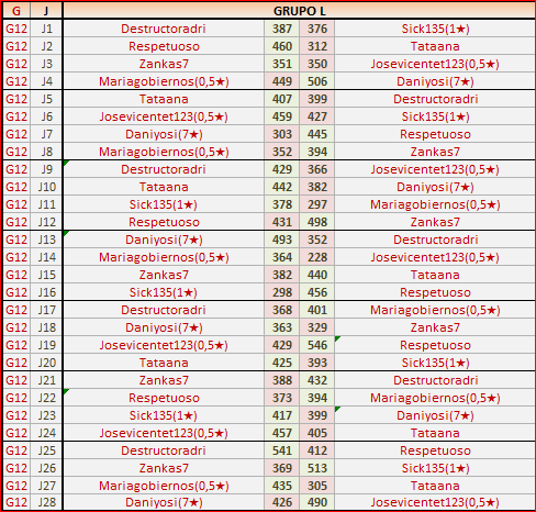 Deja un comentarioES OBLIGATORIO RESPETAR EL ORDEN LOCAL (IZQ) Y VISITANTE (DER), ASÍ COMO INDICAR EL GRUPO CORRESPONDIENTE Y LOS NÚMEROS DE JORNADA.