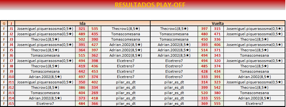 FIN PLAY OFF IDA: 10 DE febrero a las 21:00