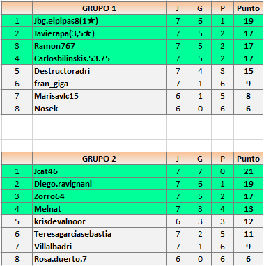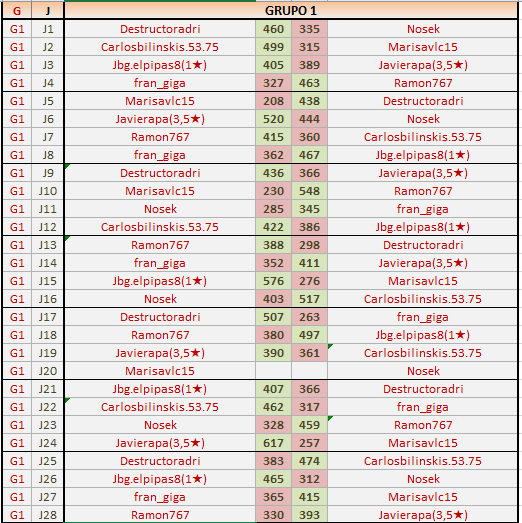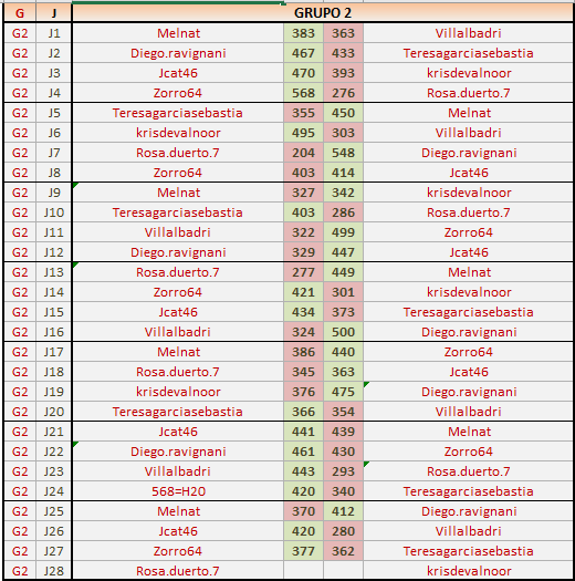 Deja un comentarioEn está página se irán publicando los resultados de las diferentes partidas, siendo ambos jugadores responsables de subirlos o de comprobar que ya hayan sido publicados, insertando un COMENTARIO en la parte inferior de la pantalla (opción “Deja tu comentario”), indicando el nombre de los dos jugadores y los puntos obtenidos en la partida.