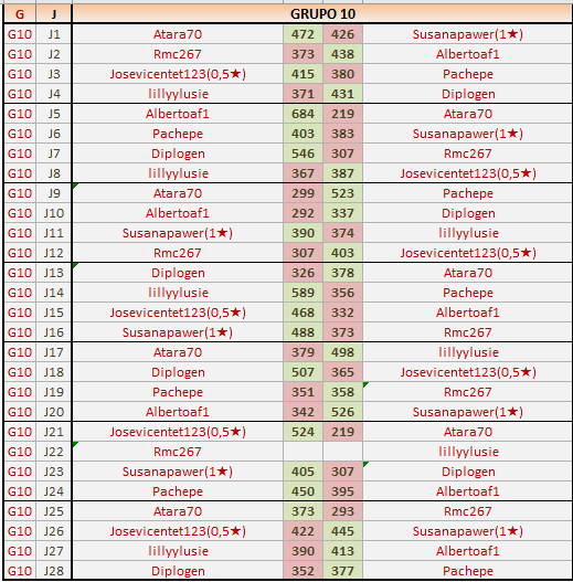 Deja un comentarioEn está página se irán publicando los resultados de las diferentes partidas, siendo ambos jugadores responsables de subirlos o de comprobar que ya hayan sido publicados, insertando un COMENTARIO en la parte inferior de la pantalla (opción “Deja tu comentario”), indicando el nombre de los dos jugadores y los puntos obtenidos en la partida.