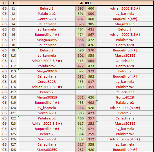 ES OBLIGATORIO RESPETAR EL ORDEN LOCAL (IZQ) Y VISITANTE (DER), ASÍ COMO INDICAR EL GRUPO CORRESPONDIENTE Y LOS NÚMEROS DE JORNADA.