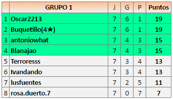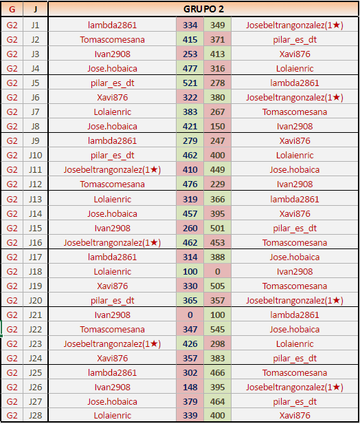 En está página se irán publicando los resultados de las diferentes partidas, siendo ambos jugadores responsables de subirlos o de comprobar que ya hayan sido publicados, insertando un COMENTARIO en la parte inferior de la pantalla (opción “Deja tu comentario”), indicando el nombre de los dos jugadores y los puntos obtenidos en la partida.