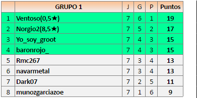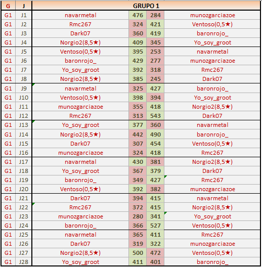 Deja un comentarioEn está página se irán publicando los resultados de las diferentes partidas, siendo ambos jugadores responsables de subirlos o de comprobar que ya hayan sido publicados insertando un COMENTARIO en la parte inferior de la pantalla (opción «Deja tu comentario»), indicando el nombre de los dos jugadores y los puntos obtenidos en la partida.
