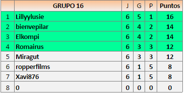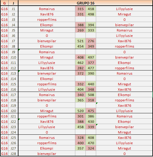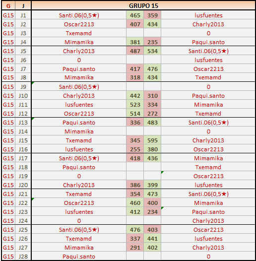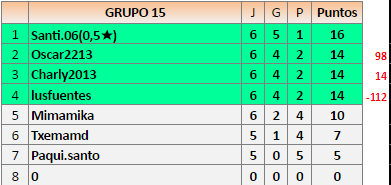 Deja un comentarioEn está página se irán publicando los resultados de las diferentes partidas, siendo ambos jugadores responsables de subirlos o de comprobar que ya hayan sido publicados insertando un COMENTARIO en la parte inferior de la pantalla (opción «Deja tu comentario»), indicando el nombre de los dos jugadores y los puntos obtenidos en la partida.