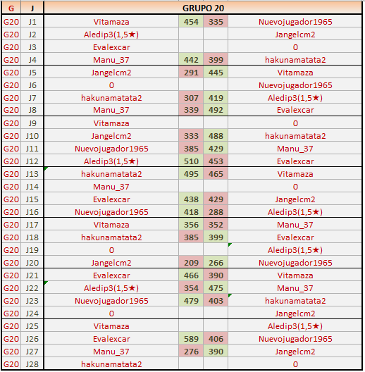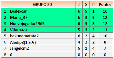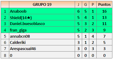 En está página se irán publicando los resultados de las diferentes partidas, siendo ambos jugadores responsables de subirlos o de comprobar que ya hayan sido publicados insertando un COMENTARIO en la parte inferior de la pantalla (opción «Deja tu comentario»), indicando el nombre de los dos jugadores y los puntos obtenidos en la partida.